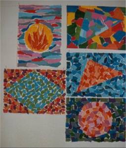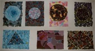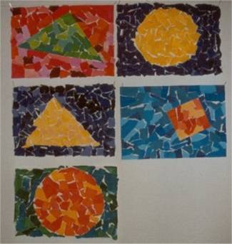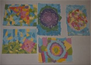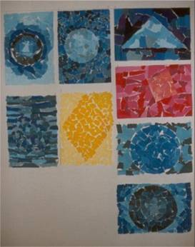 komponere forskjellige fargekontraster med disse malte småbitene.